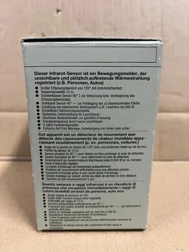 *** SUPER AKCIJA *** #2773 Kvalitetan infracrveni detektor pokreta STEINEL IS 120; Snaga 500W; Potpuno NOVO, neotpakovano! STEINEL - Made in Germany; Opis: Veliki domet detekcije od 120° sa zaštitom od puzanja. Domet senzora od 12 m. Senzor se može okretati za 90° ↑ radi skraćivanja ili produženja dometa detekcije. Senzor se može rotirati za 40° radi definisanja područja koje treba pratiti. Kontroliše električna opterećenja (npr. svetla) do 500 W. Podesivi prag sumraka. Kontinuirano podesivo trajanje osvetljenja. Utikač za poklopce za ciljano otkrivanje. Ušteda energije zbog kratkog trajanja osvetljenja.