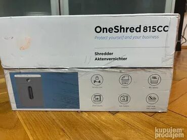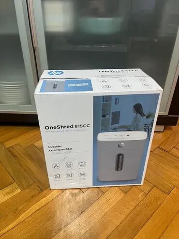 _Opis:__Sa modernim HP OneShred 815CC možete istovremeno da uništite do osam DIN A4 listova ili jednu kreditnu karticu. Šreder uništava vaše dokumente poprečnog preseka na male čestice veličine 5 x 18 mm i ima brzinu sečenja od 1,8 metara u minuti. Zahvaljujući visokom nivou bezbednosti P-4, obezbeđuje uništavanje dokumenata u skladu sa GDPR-om za osetljive podatke kao što su platne liste i poreske prijave. Heftalice ne predstavljaju problem za moderni šreder i ne moraju se mukotrpno i dugotrajno uklanjati prethodno. Pored zaštite od pregrevanja i preopterećenja, šreder dokumenata sa automatskim pokretanjem i zaustavljanjem takođe ima funkciju automatskog obrtanja, koja vraća uloženi materijal u slučaju zaglavljivanja papira. Pouzdan HP OneShred 815CC u elegantnom sivom dizajnu je intuitivan za upotrebu, uklapa se pored svakog stola i ne bi trebalo da nedostaje ni u jednom domu ili poslovnom prostoru. Zahvaljujući prozoru za gledanje na kutiji za otpatke, uvek možete videti kada kutiju treba isprazniti, sa kapacitetom posude od 15 litara. Za lako pražnjenje, izvadite glavu seckalice iz posude za sakupljanje, ispraznite otpad i zamenite dodatak za sečenje. Sa radnom bukom od 68 dB, seckalica radi relativno tiho. Ako jačina zvuka više nije prijatna tokom rada, trebalo bi da očistite jedinicu za sečenje priloženom HP uljanom salvetom._