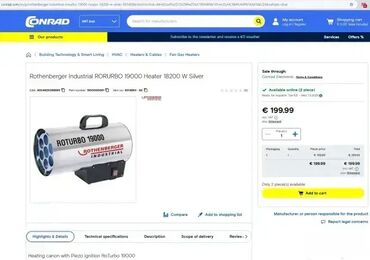 Veoma kvalitetan i robustan turbo ventilatorski gasni grejač Roturbo 19000 je napravljen od visokokvalitetnog nerđajućeg čelika i idealan je za grejanje velikih površina, pijaca i šatora.