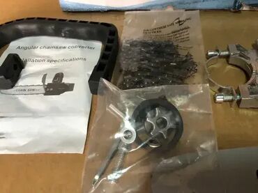 _Karakteristike:__Ovaj set nosača za lančanu pilu koristi kao pogon ugaonu brusilicu;__Njegova ulazna snaga ovisi o vašoj vlastitoj ugaonoj brusilici, tako da to nije određeni broj.__Ima plastičnu ručku koja je vrlo zgodna za nošenje.__Sigurnost testerisanja efektivno poboljšava efikasnost vašeg rada.__Interval lanca sa šrapnelom za kontra-napad, rupa za vođenje ulja, čine upotrebu sigurnijom.__Ovi lanci testere su poboljšana verzija lanaca i poluprofesionalni su lanci.__Visokokvalitetni lanac i vodilica, visoka otpornost na habanje, glatko sečenje i dug vek trajanja.__Dizajn metalne pregrade, sigurnosna zaštita, sprečava prskanje piljevine.__Samoregulacija, automatski sistem ubrizgavanja goriva, automatski podmazuje lanac, poboljšava radnu efikasnost.__specifikacije:__Materijal lanca: visokougljični čelik_ _Veličina vodilice: 34,2 cm/13,39'' dužina, 6cm/2,36'' širina_ _Veličina klipnjače: M10_ _Napon: 220V_ _Brzina praznog hoda: 10000 o/min_ _Dužina oštrice: __Dužina lanca: 41 cm_ _Dužina kruga lanca: 82 cm_ _Debljina lanca: 4mm_
