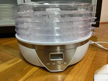 Zdrav način pripreme sušenog voća bez konzervansaTakođe pogodno za sušenje mesa5 spratova koji se mogu slagati - mogu se koristiti i pojedinačnoDigitalni displej za jednostavno podešavanje temperature i vremena sušenja**Temperatura: 40 - 70 ° C (podešavanje u koracima od 5 ° C)****Tajmer: do 48 sati neprekidnog rada** Ne sadrži BPASpecifikacije: Priključena snaga: cca. 350 WMaterijal: Nerđajući čelik, plastika