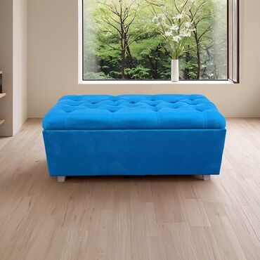 Tapacirani tabure/klupa sa dugmićima (chesterfield stil) – idealan kao pomoćno sedenje, oslonac za noge ili stočić u dnevnoj sobi ili spavaćoj sobi.