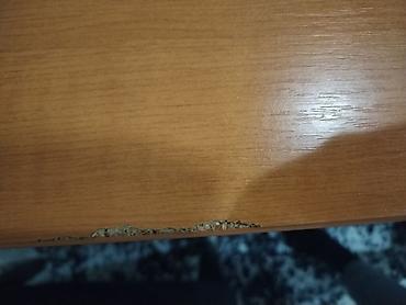 - Na fotografijama su prikazana oštećenja na ploči (udubljenja i okrznuta ivica), što je korisno onima koji planiraju prefarbavanje, presvlačenje folijom ili zamenu/obnovu radne ploče.