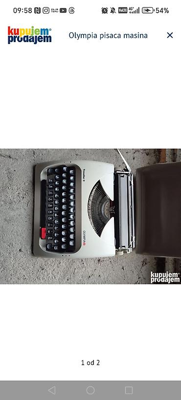 - Olympia Traveler C: prenosiva mehanička pisaća mašina iz Olympia serije, sa zaštitnim poklopcem/koferom. Latinični raspored tastera sa našim slovima (č, ć, ž, š, đ). Lagan format za rad na stolu i za poneti. Precizan segment, ručno podešavanje margina, kolica pune širine, ručna zamena trake. Idealna za učenje mašinskog kucanja, beleške i radionice kreativnog pisanja.
