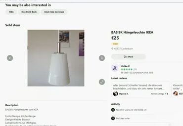 KablViseća lampa IKEA - BASISK; Standardno grlo E27; Prečnik lustera (max. ) 22cm; Visina lustera 23cm; Potpuno NOVO, neotpakovano! Made in IKEA of Sweden;