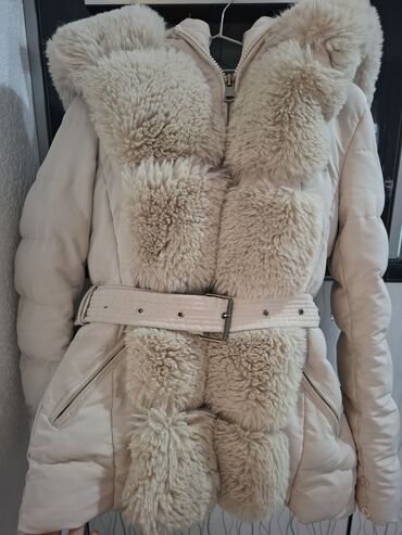 - Topla, pufnasta jakna sa bogatim krznenim panelima napred i na kapuljači