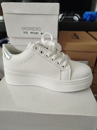 - Boja: White Silver 3 (bela sa diskretnim srebrnim/iridescentnim detaljem na peti)