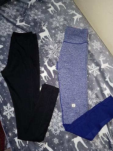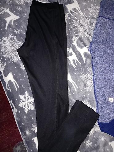 - Boje/uzorci: jednobojne crne; melirano sivo‑plavo sa kontrastnim donjim delom nogavica u tamno plavoj.