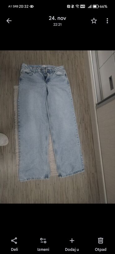 - Kroj: visok struk, ravne nogavice sa blagim wide fit izgledom