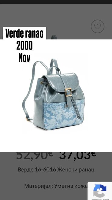 - Dizajn: kombinacija glatke teksture i prednjeg džepa sa floralnim dezenom
