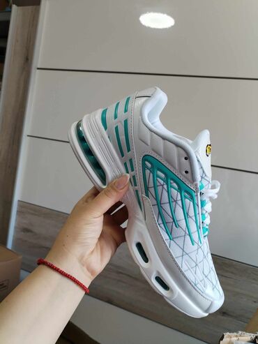 Nike patike – model inspirisan Air Max linijom ug23cm - Gornjište: pleteni (knit) materijal u sivim tonovima za prozračnost i udobno prijanjanje - Detalji: ojačanja oko pertli i bočnih strana u ta...