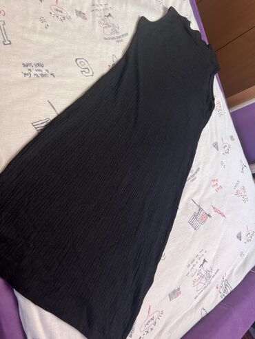 MidiCrna haljina, od rebrastog pamuka, kao nova, prijatna za nošenje, udobna, moderna.