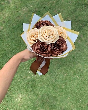 - Elegantni buketi sa 6–9 ruža u raznim bojama: klasična crvena, kraljevsko plava, krem/bež i čokoladno braon kombinacije.