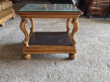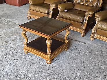 Klasičan drveni klub-sto sa staklenom pločom