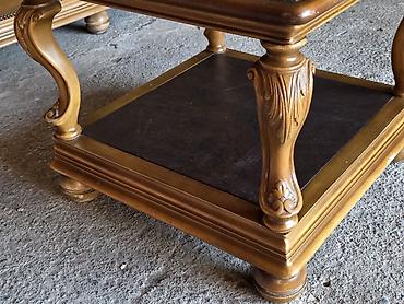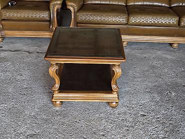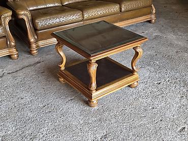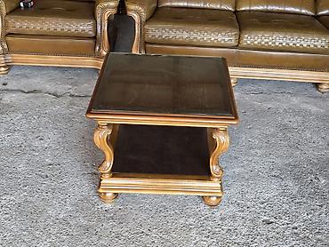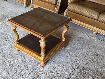 Klasičan drveni klub-sto sa staklenom pločom - Kvadratni klub-sto u