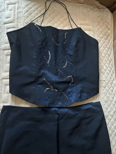 Komplet. suknja i korset indigo plavo se presijava.jednom noseno