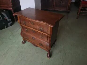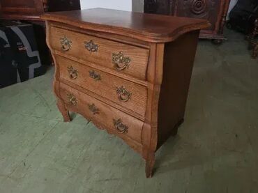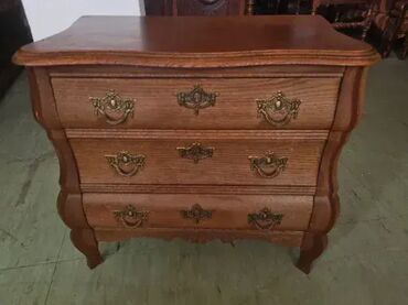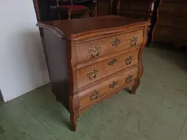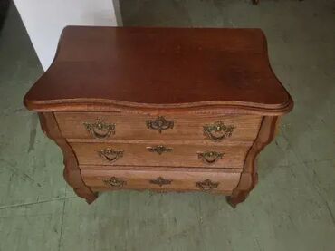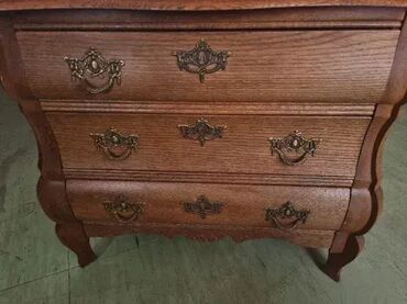 Drveni komoda/kredenca sa rezbarenim frontama - Materijal: masivno drvo - Dizajn: klasičan, sa dekorativnim rezbarijama na vratima i fiokama - Raspored: dve bočne komore sa vratima + centralni deo...