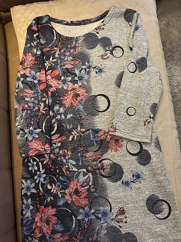 Haljina cvetna kvalitetna likra sarena sa faltama na rajfislus na prednjoj strani kao modni detalj. Obim grudi stanje mirovanja 100 do 120. Obim struka 80 do 98. Obim kuka 104 do 120. Duzina 100. V...