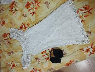 • Elegantna bela haljina, dužine do kolena, idealna za svečane prilike