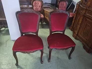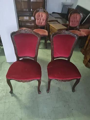 Tapacirane trpezarijske stolice – bež/peščana nijansa - Dizajn: zaobljena školjkasta forma sa elegantnim prošivom u šari lista na naslonu. - Materijal: mekana, baršunasta tkanina prijatna na dodir...