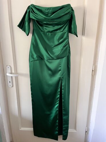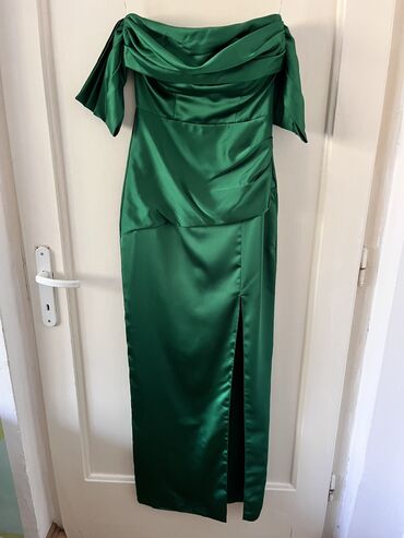 Svečana duga haljina,u maslinastoj boji,u M veličini.Haljina kao nova,jednom nošena.FERVENTE,proizvedeno u Turskoj.