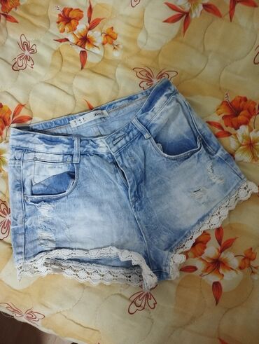 Ženske kratke farmerke – denim šorts - Klasican petodžepni model sa kopčanjem na dugme i rajsferšlus - Svetloplava isprana teksas nijansa sa blagim “washed” efektom - Podvrnuti porubi (mansete) ko...