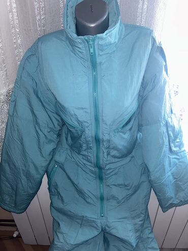 Jednodelno skijaško odelo – retro dizajn - Boja: tirkizno-zelena sa crnim i crvenim detaljima, kontrastni paneli i bele paspul trake - Kroj: jednodelni kombinezon sa integrisanom jaknom i pantalon...