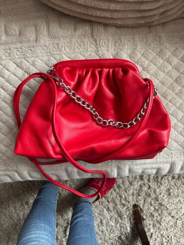 UpotrebljenоCrvena ženska torba – mekana “pouch”/kroasana forma
