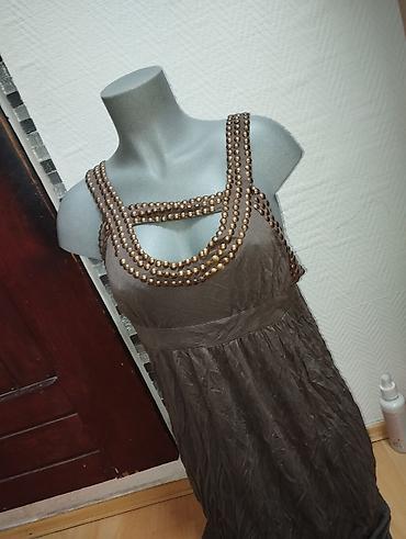 Duga maslinasta haljina, veličina S, sa nitnama.