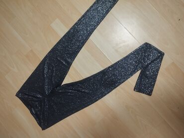 - Detalji: ravne nogavice, glatka površina, šljokice ravnomerno raspoređene po celoj tkanini