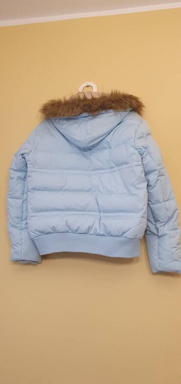 Sa postavomSvetloplava zimska jakna sa kapuljačom koja ima krzno marke Anzoni vel. 42.