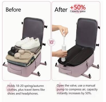 Vakuum ranac u koji staje više stvari nego u kofer. Odobren za avio prevoz kao besplatni prtljag. Ranac ima vakuum kesu i pumpu. Nov nekorišćen.