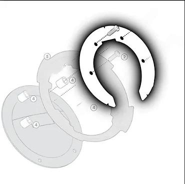 - Dizajn: potkovica/prsten koji se pričvršćuje na fabrični poklopac rezervoara pomoću priloženih šrafova; omogućava čvrsto i stabilno kačenje torbe bez kontakta sa lakom na rezervoaru.