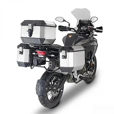 - Konfiguracija: gornji kofer (top case) + dve bočne kutije (side panniers)