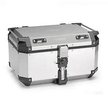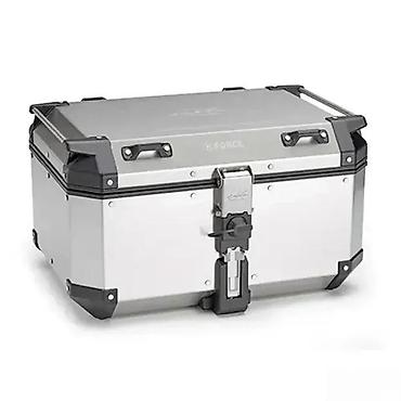 Aluminijumski top case marke K-FORCE, dizajniran za siguran transport stvari na motociklu. Izrađen je od izdržljivog aluminijuma u srebrnoj boji sa crnim ojačanjima na uglovima, što obezbeđuje dodatnu zaštitu i dugotrajnost. Poseduje siguran mehanizam za zaključavanje, idealan za putovanja i svakodnevnu upotrebu, pružajući pouzdano rešenje za odlaganje prtljaga.