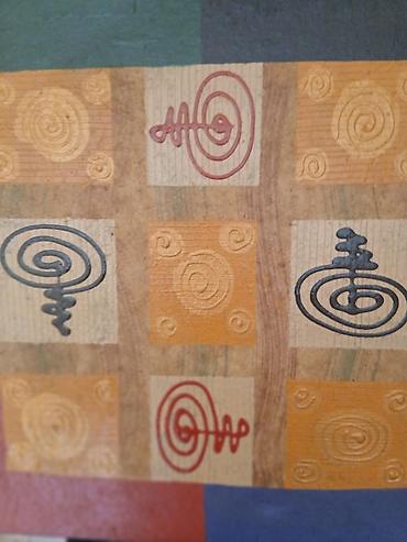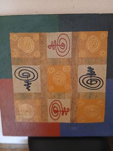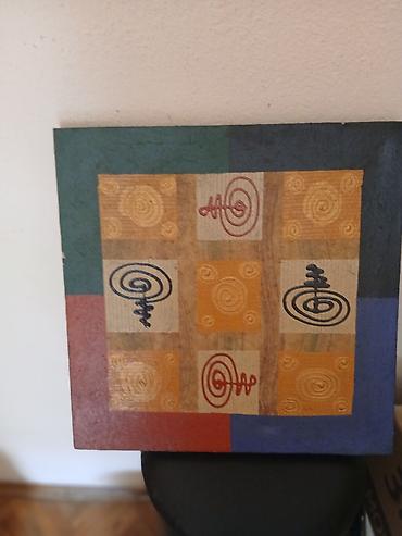 - Stil: moderni/etno apstrakt, dekorativna slika pogodna za dnevni boravak, hodnik ili kancelariju