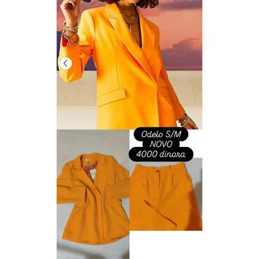 Novo odelo narandžaste boje. Pantalone S/M. Dugokog struka, sirokih nogavica. Sako oversized. Moze i M i L....