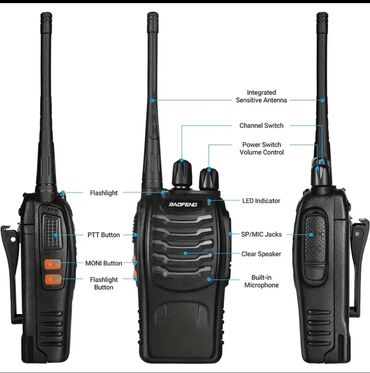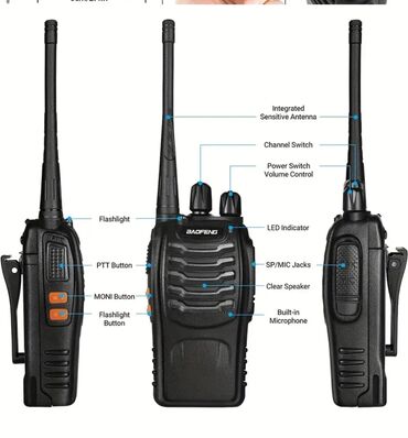 U kompletu: 2 radio stanice, 2 postolja/punjača, 2 slušalice s mikrofonom.