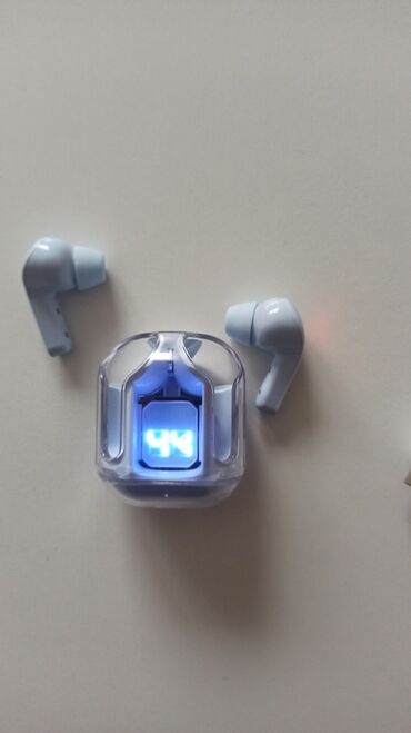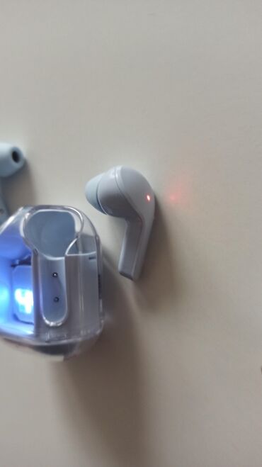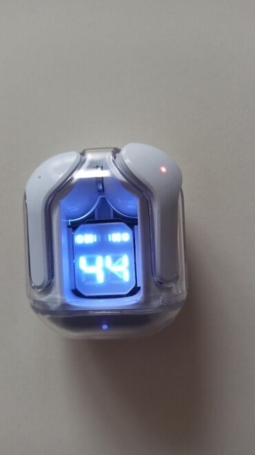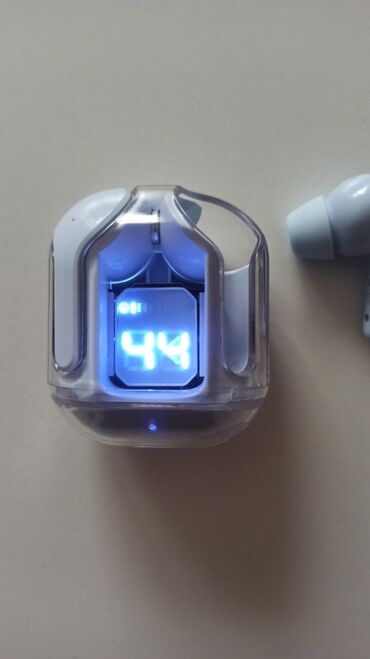 U paketu: dve bežične slušalice i prozirno punjačko kućište sa LED displejem.