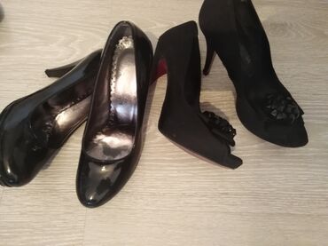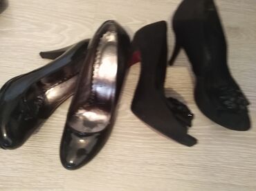 Elegantne crne ženske štikle – - Par 1: klasične crne salonke sa visokom tankom potpeticom. Zatvoren špic, blago zaobljen, diskretan sjaj na gornjištu. Unutrašnjost u bež tonu za udobniji osećaj....