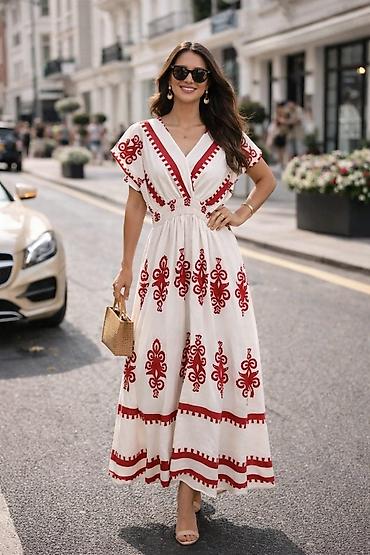 Boho maxi haljina sa etno vezom - Model: duga, lepršava maxi haljina