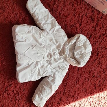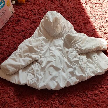 Dečja zimska jakna Sfera, veličina 6–7 godina (116–122 cm). Tamno siva/črna podloga sa šarenim jednorozima, oblacima, leptirima i duginim detaljima. - Toplo postavljena, prošivena za bolju izolac...