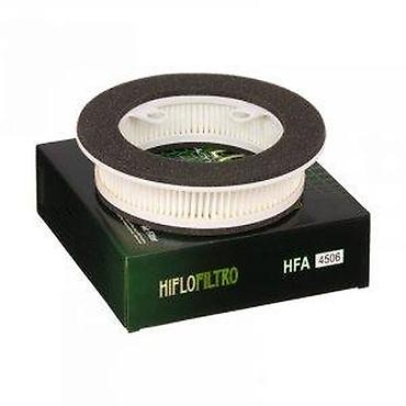 Cirkularni vazdušni filter marke HIFLOFILTRO, model HFA 4506. Filter ima beli plisirani element okružen crnom penastom oblogom. Dizajniran je za efikasno filtriranje vazduha koji ulazi u motor, obezbeđujući optimalne performanse i duži vek trajanja motora. Pogodan za motocikle ili skutere.