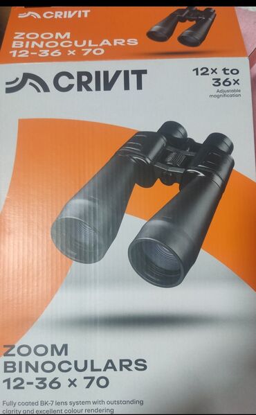 Specifikacija sa kutije: Zoom binoculars 12–36 × 70, adjustable magnification, BK-7 optics, fully coated.