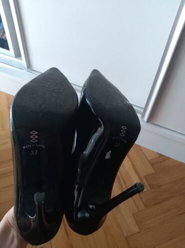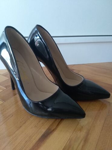 Lakovana kožaCrne lakovane cipele, obuvene jednom. Br. 37.