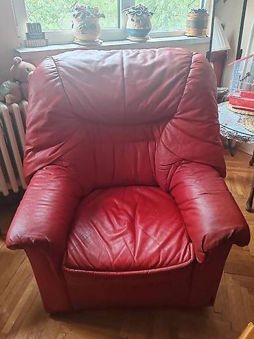 Crveni kožni garnitur set – sofa i dve fotelje