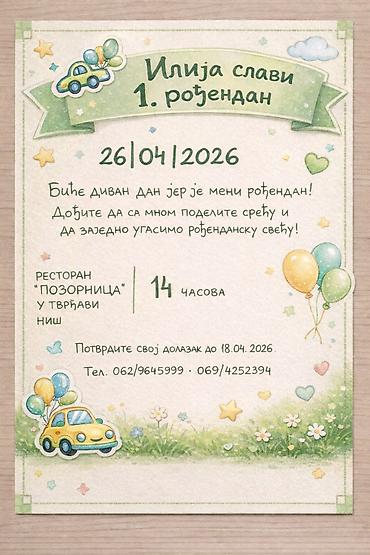 Napomena: na pozivnici na fotografiji nalazi se datum 26/04/2026 i lokacija “Pozornica, Niš” – informativno, nije deo proizvoda.