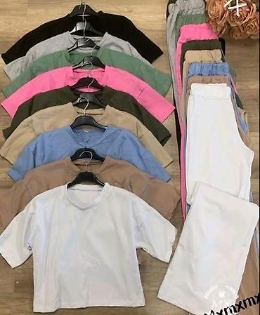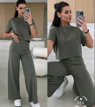 Damski komplet – kratka majica i široke pantalone - Dvodijelni set od