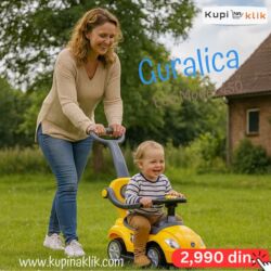 - Dečija guralica u obliku autića, pogodna za šetnje i igru na otvorenom.