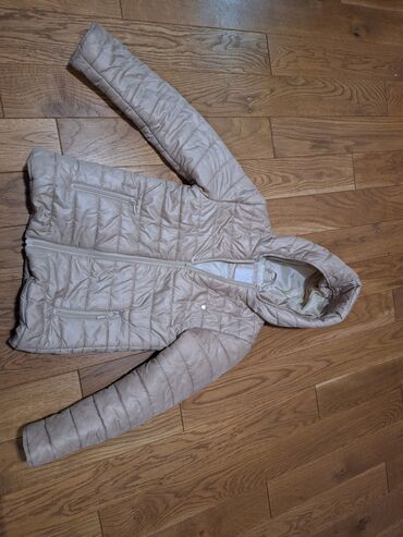134-140Dečija jakna sa kapuljačom, svetlo-bež boje.
